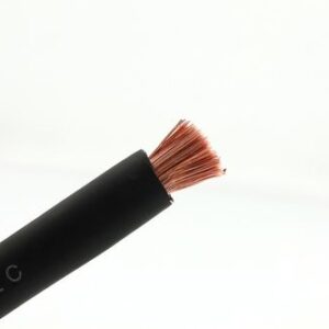 De accukabel 70mm² in het zwart is een stevige koperen kabel die speciaal ontworpen is voor het verbinden van accu’s, omvormers, Multiplus en andere elektrische apparaten.